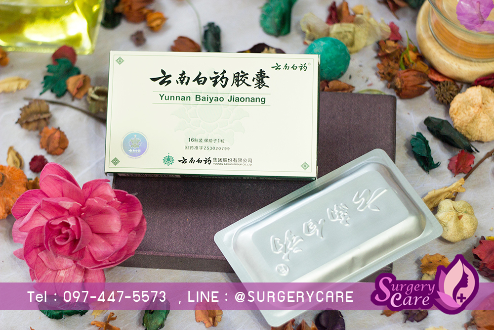 อยู่กลางแผงนะคะ ตัวแคปซูลจะมีภาษาจีนและภาษาอังกฤษคำว่า Yunnan Baiyao