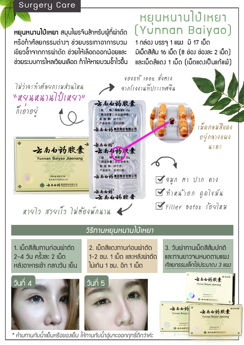 1.ทานหยุนหนานเม็ดส้มครั้งละ 2 เม็ด หลังอาหาร 3 มื้อ